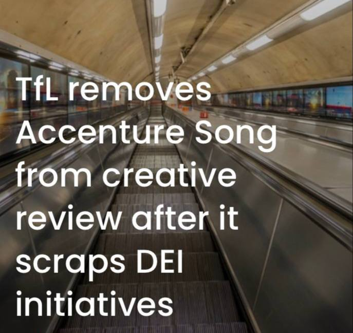 Например корпорация Transport for London (компания управляющая всей транспортной средой британской столицы) исключила Accenture Song (маркетинговое подразделение глобальных консультантов Accenture) из своего креативного тендера после того, как компания решила прекратить свои инициативы в области разнообразия, равенства и инклюзивности (DEI).
