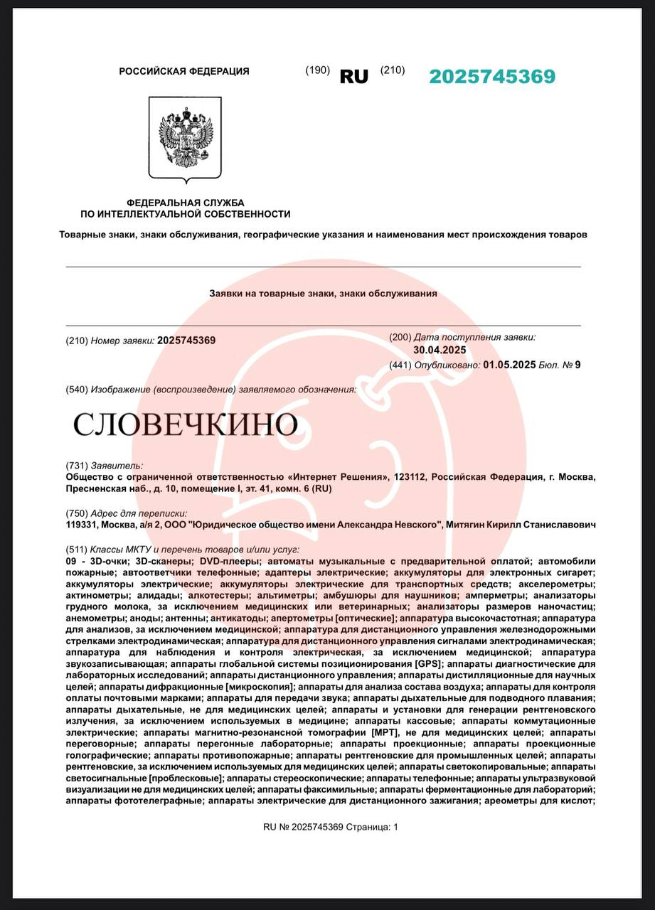 🤓Озон регистрирует симпатичный товарный знак «Словечкино». Связан ли он с рекордом Овечкина в НХЛ? Гадаем.